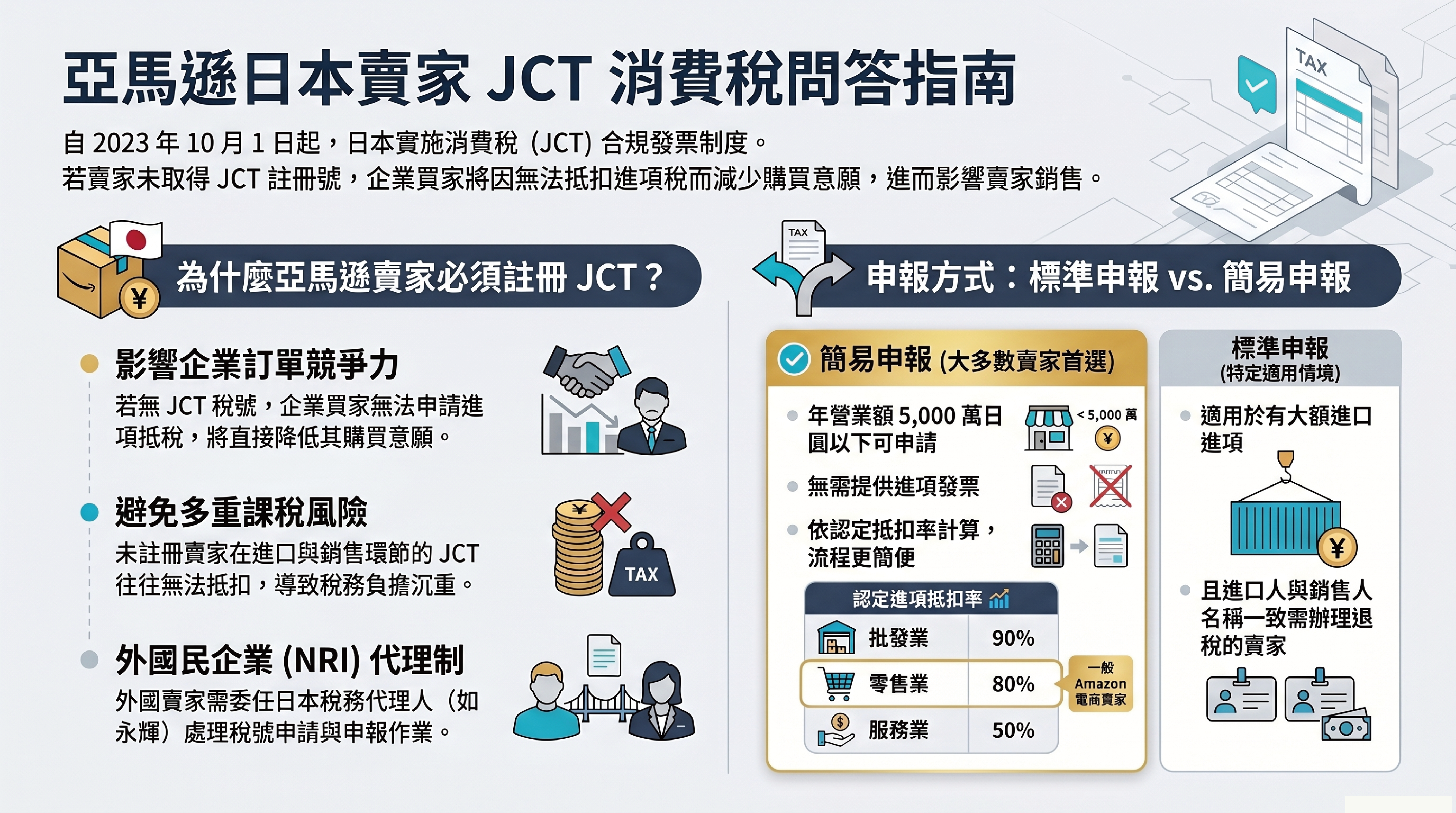 此外,假如NRI不申請JCT 稅號,假如Amazon上買家是企業,買進來時Amazon所代繳的JCT,也不能當作進項JCT稅額,在賣出時又要再繳JCT.