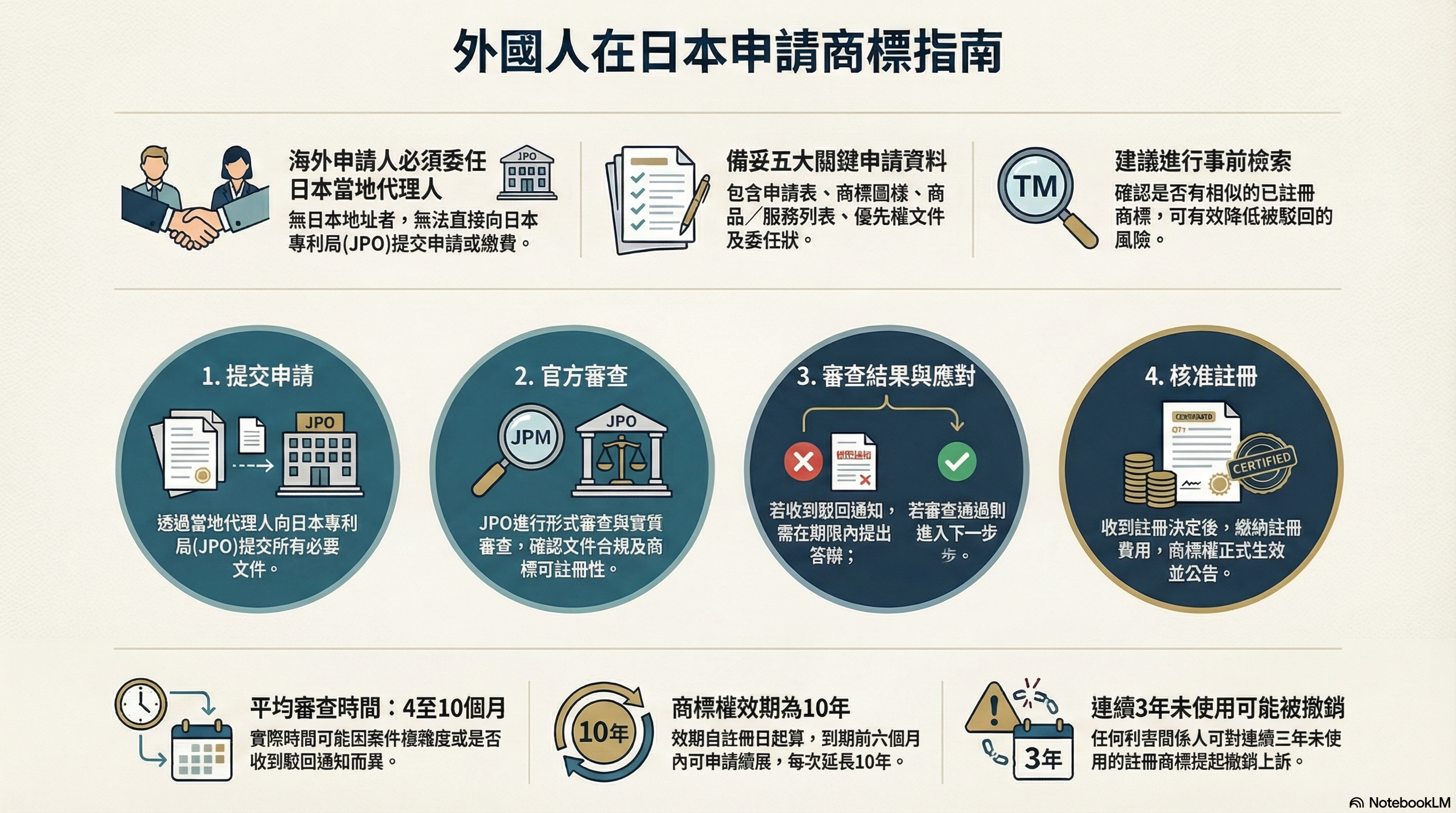 - 4.1 駁回理由通知:若申請不符合實質要求,JPO會發出駁回理由通知(Office Action)。